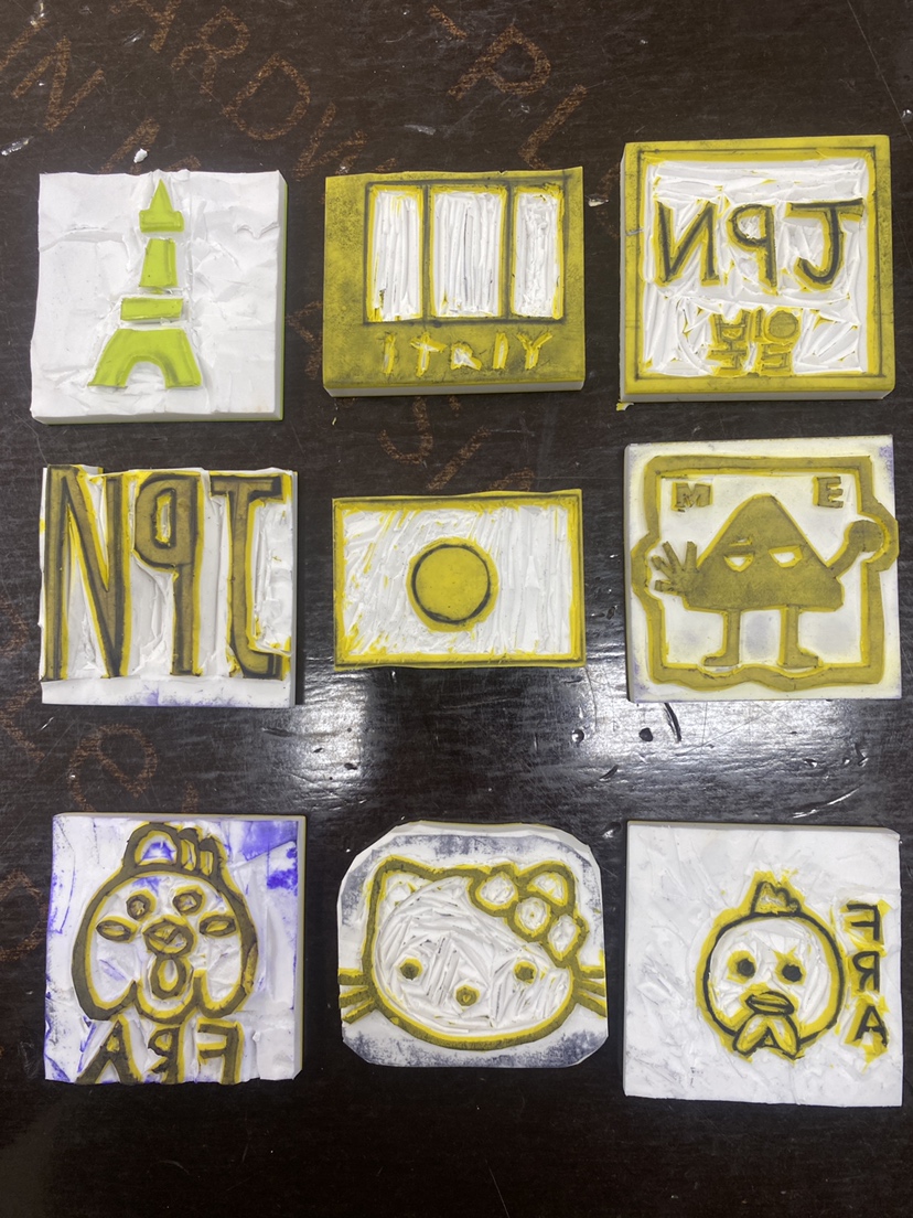 조각용 지우개 활용(일반 고무판화 조각하기 어려워 함)