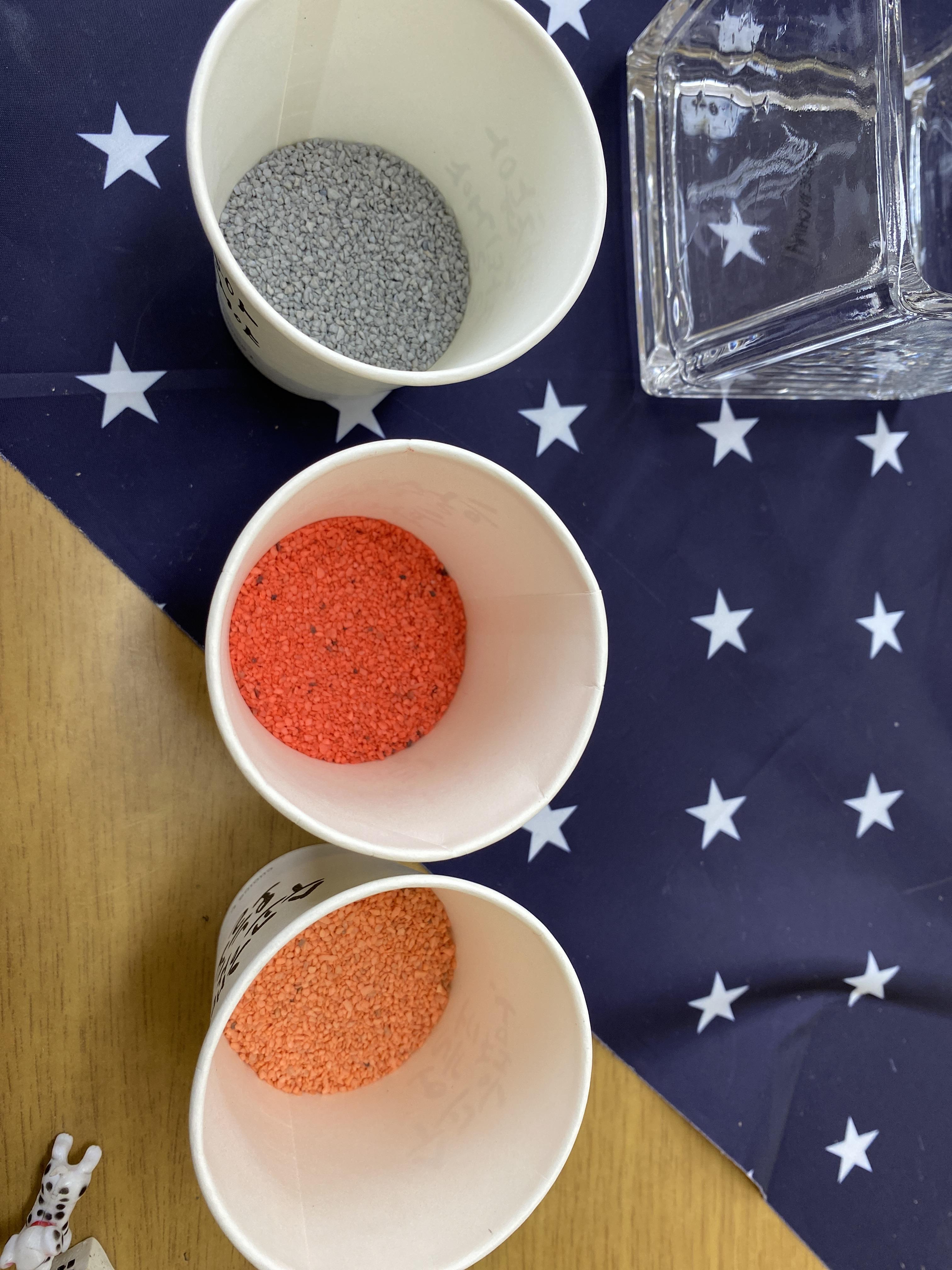 -4가지 색모래를 층이 생기게 나름대로 반쯤 채워준다.
